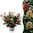 " Skimmia japonica Rubella & Finchy is een prachtige plant die perfect in een border staat, maar ook mooi staat in een pot op het balkon of terras. Deze plant is een echte aanwinst voor uw tuin, vooral in de herfst en winter wanneer de bloemen beginnen te bloeien.