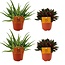 Uiterlijk van de plant: Aloe Spider: Deze plant heeft lange, kleine, groene bladeren die uit een rozet groeit en een spinachtige uitstraling hebben. De bladeren zijn stekelig met een lichtgrijze tint en betrouwbare groene accenten. Peperomia Rosso: Deze plant heeft ronde, groene bladeren met een duurzame afwerking en een opvallende rode onderkant. De bladeren hebben een dikke textuur en de bloemen zijn zelden en klein, vaak onopvallend.