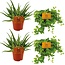 Uiterlijk van de plant: Aloe Spider: Deze plant heeft lange, kleine, groene bladeren die uit een rozet groeit en een spinachtige uitstraling hebben. De bladeren zijn stekelig met een lichtgrijze tint en betrouwbare groene accenten. Peperomia Rotundifolia: Deze plant heeft kleine, ronde, donkergroene bladeren die op lange, dunne stelen groeien. De bladeren zijn vlezig en glanzend, wat een levendige uitstraling geeft. Bloemen zijn zeldzaam en onopvallend.