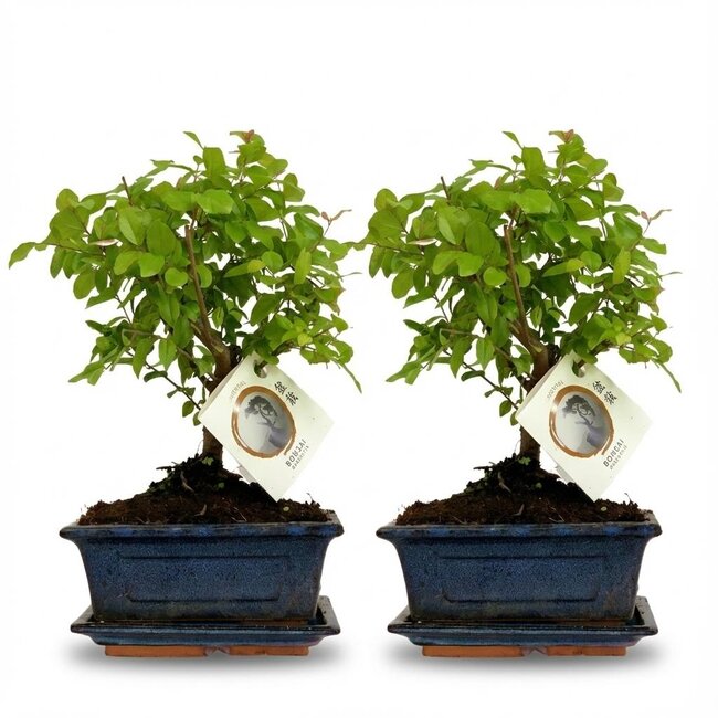 Deze Bonsai met bolvormige kruin is een miniatuurboom die roest en elegantie uitstraalt. Elke boom is uniek en wordt geleverd in een decoratieve keramische schaal. De Bonsai heeft een lichte standplaats nodig, maar vermijdt direct zonlicht in de zomer. De grond moet constant licht vochtig zijn, maar laat op dat er geen water in de schaal blijft staan. De hoogte van de plant is 25 - 30 cm (inclusief schaal).