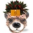 Peperomia Caperata Rosso - Ø11cm - ↕15cm + Plantenbak Luipaard D12x9,5cm - Bruin
