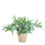 De Phlebodium, ook wel bekend als Blauwvaren of Zinkvaren, is een opvallende kamerplant. Zijn unieke grijsblauwe bladeren geven hem een onderscheidend uiterlijk, wat deze kamerplant erg populair maakt voor binnenhuisdecoratie. Deze kamerplant is een epifyt, wat betekent dat hij in zijn natuurlijke habitat op andere planten groeit zonder deze te schaden. Hij gebruikt de gastplant alleen als steun. De blauwvaren heeft goudbruinkleurige schubben op zijn wortels, wat hem de soortnaam ‘aureum’ geeft, wat ‘goudkleurig’ betekent. Phlebodium komt oorspronkelijk uit de regenwouden van Midden-Amerika en de moerasbossen van Florida. In deze vochtige en schaduwrijke omgevingen gedijt hij goed, wat hem ook geschikt maakt voor minder zonnige plekken in huis. De verzorging van de Phlebodium is vrij eenvoudig, wat hem een goede keuze maakt voor zowel beginnende als ervaren plantenliefhebbers. Regelmatig water geven en zorgen voor indirect licht zijn de belangrijkste verzorgingstips. De Sofia plantenpot is gemaakt van zeegras. Dit natuurlijke materiaal wordt gedroogd en gevlochten, met een prachtige plantenpot als resultaat. De Sofia plantenpot is gemaakt van zeegras dat is gedroogd en gevlochten. De pot heeft een plastic inlay, zodat er geen water doorheen kan. De beige kleur geeft deze pot een extra natuurlijke uitstraling, die prachtig is in combinatie met groene kamerplanten.