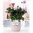 - De plant wordt geplaatst in een roze keramieken pot uit de P&PURE Sophie-serie, wat zorgt voor een harmonieus en romantisch geheel.